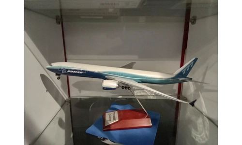 Boeing factory colours 777-300ER 36cm. Resin, Roating Engines, moving Roating front wheels. Mahogany stand. Stunning model. No box.