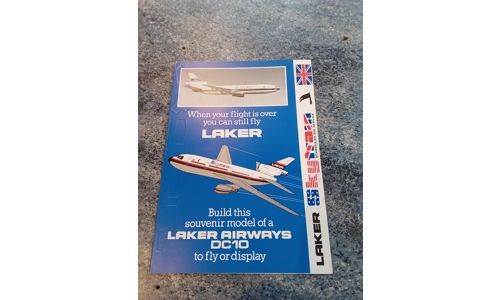 Laker Airways Skytrain DC10 paper plane. Original merchandise. A great item. Collectors piece in unused condition. A4 card size.